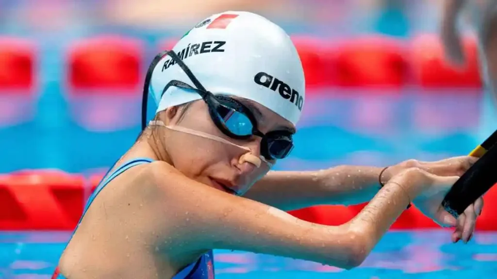 La atleta mexicana clasificó a la final en 100 metros dorso – S2 femenil. En la final, Aceves logró el segundo lugar en la alberca de París La Defense Arena, con un tiempo de 2:21.79, ganando la medalla para México y rompiendo el récord de las Américas. ¡Se quedó a solo seis centésimas del oro!